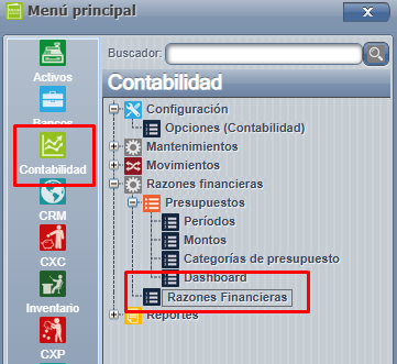 Por medio de este manual, podremos visualizar la configuración respectiva para las categorías de presupuesto,Dashboard y razones financieras.