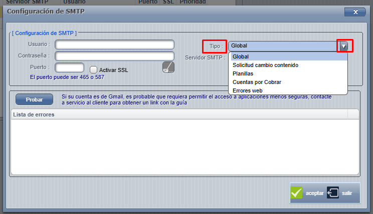 - Interna: Se usa para todo lo demás de la compañía, envío de documentos RB, planillas y demás internos.
