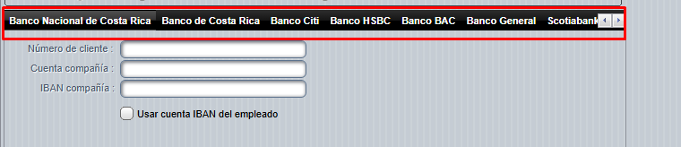 Por ejemplo si se selecciona BANCO NACIONAL lo que deben incluir es la información de número de cliente,cuenta compañia, IBAN compañía ( solo se agrega la primera vez ) , luego lo sigue halando para todas las semanas o quincenas siempre y cuando se seleccione el mismo banco para la generación del archivo.