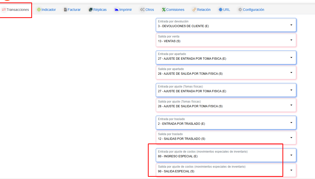 - Las transacciones de Entrada por ajuste de costos y Salida por ajuste de costos DEBEN estar configuradas en opciones generales.