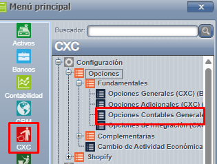 Ingreso al submen煤 en WEB, CXC=>Opciones Contables Generales: