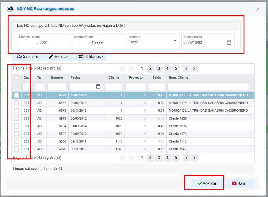 Con esta pantalla abierta, nos dirigimos a la opci贸n de NC/ND. Ac谩 seleccionamos en Utilitarios => Otros ND => ND y NC para rangos menores:聽