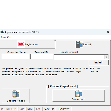 - Cada Pinpad tiene un c贸digo 煤nico asignado por el BAC