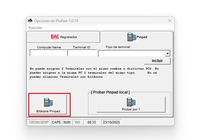 - Opciones de Pinpad: bot贸n de bit谩cora