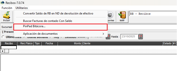 - Si el usuario debe anular un Recibo de dinero que ya tiene cobros con Pinpad, estas transacciones NO SON ANULADAS de forma autom谩tica, y quedan disponibles en la MISMA PC para ser usadas en un recibo subsecuente al mismo cliente.