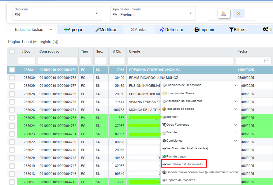 - Haga doble clic en la opción “Ver detalle del documento”.