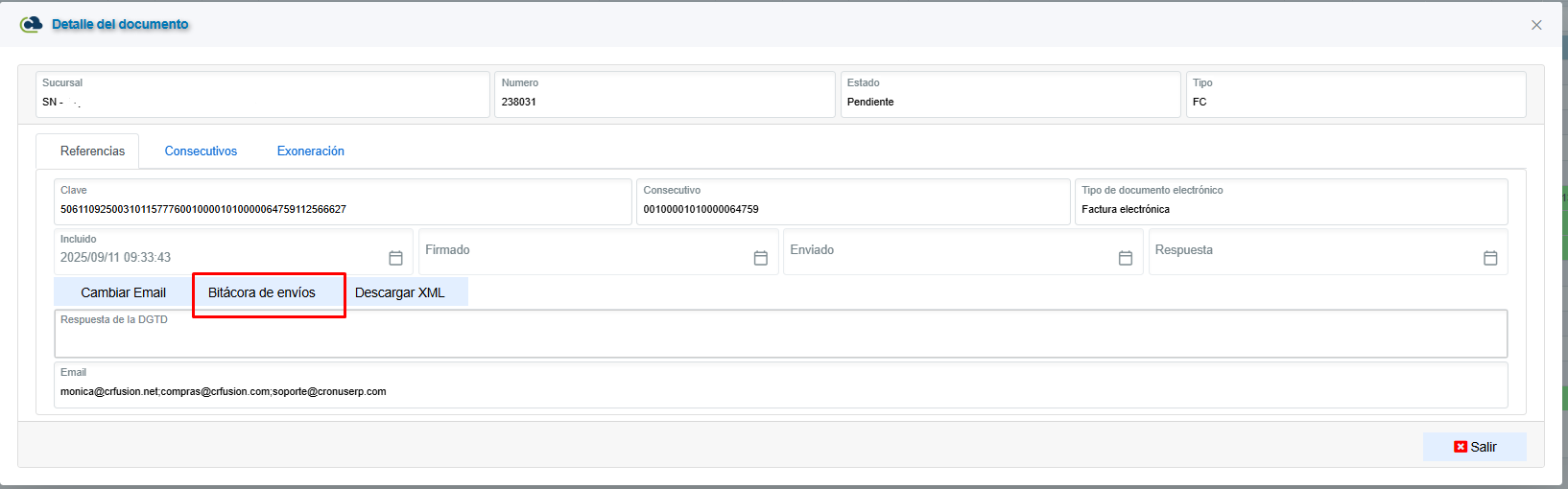 Para verificar si las facturas han sido enviadas, puede hacerlo desde la misma pantalla