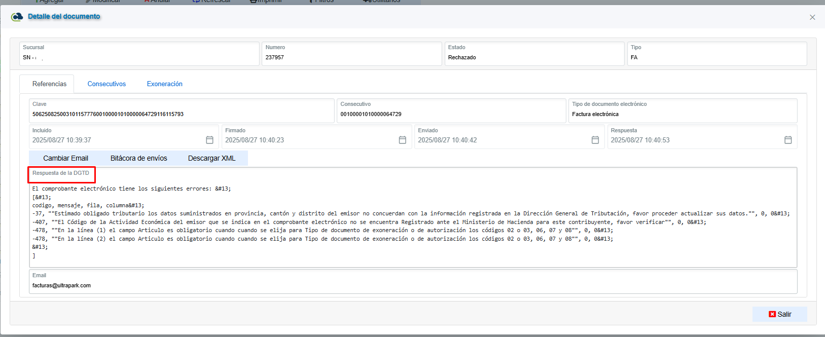 Esto le permitirá identificar de manera rápida los comprobantes que requieren revisión y corrección antes de ser reenviados a Hacienda.