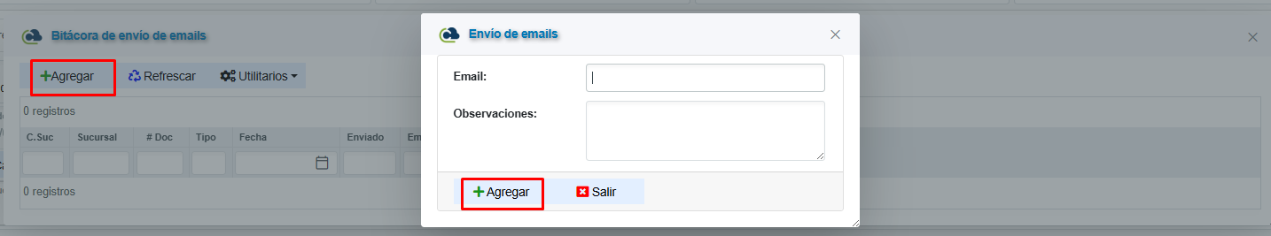 Ingrese el correo y confirme la acción presionando nuevamente el botón Agregar.