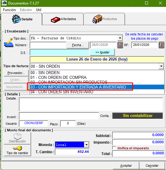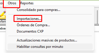 Ingresamos al men煤 principal de CRONUS y ah铆 en el 铆cono de otros, seleccionamos Importaciones:聽
