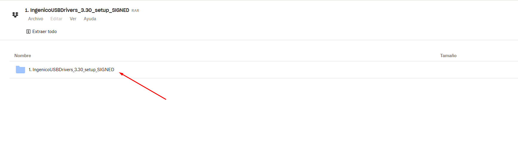 Dentro de la carpeta debemos de descargar el archivo enmarcado y colocarlo en la carpeta de nuestra computadora llamada "Drivers-Pinpad" creada previamente.