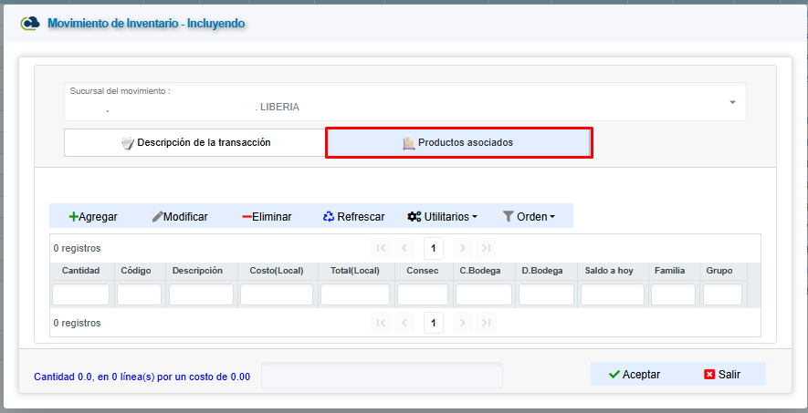 Una vez aqu铆, debemos cargar los campos obligatorios, c贸mo el tipo de transacci贸n y descripci贸n, los dem谩s campos no son obligatorios pero si requieren ser cargados lo pueden realizar. Posteriormente ingresamos a la pesta帽a de Productos asociados:聽