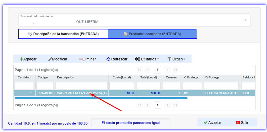 Una vez que carguemos el producto, cantidad presionamos "aceptar" para guardar la l铆nea. Si requerimos cargar m谩s debemos repetir el procedimiento y presionar "aceptar" por cada ingreso para guardar las l铆neas.聽