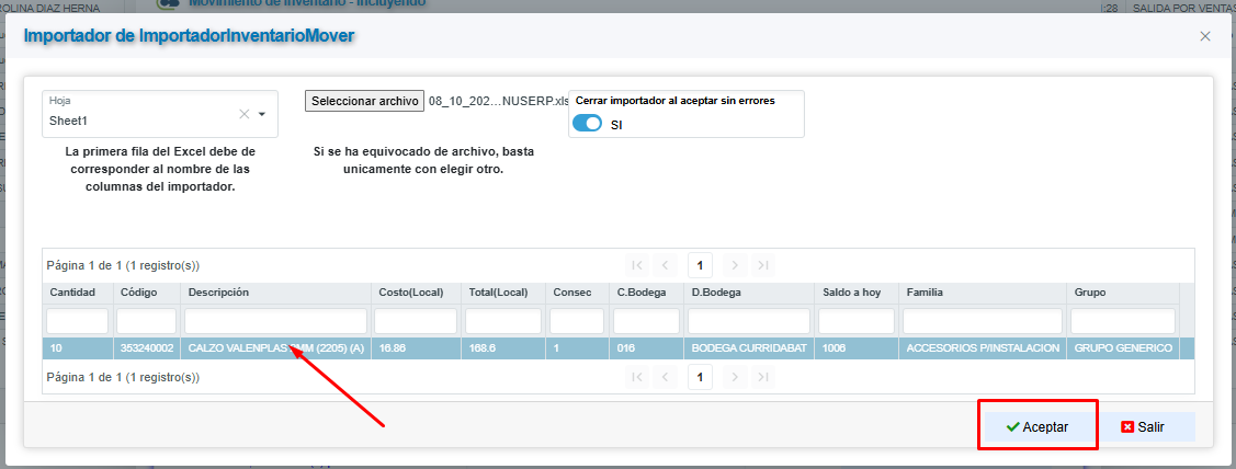 En el momento que presionamos "aceptar" al mensaje anterior ya qued贸 alimentado o descargado el inventario seg煤n la transacci贸n que estemos realizando. Una vez ingresados al sistema, los movimientos no se pueden eliminar para reversar el mismo tendremos que incluir el movimiento inverso. Ejemplo; si realizamos una salida hacemos una entrada o viceversa para "eliminar" el movimiento que incluimos por error.聽