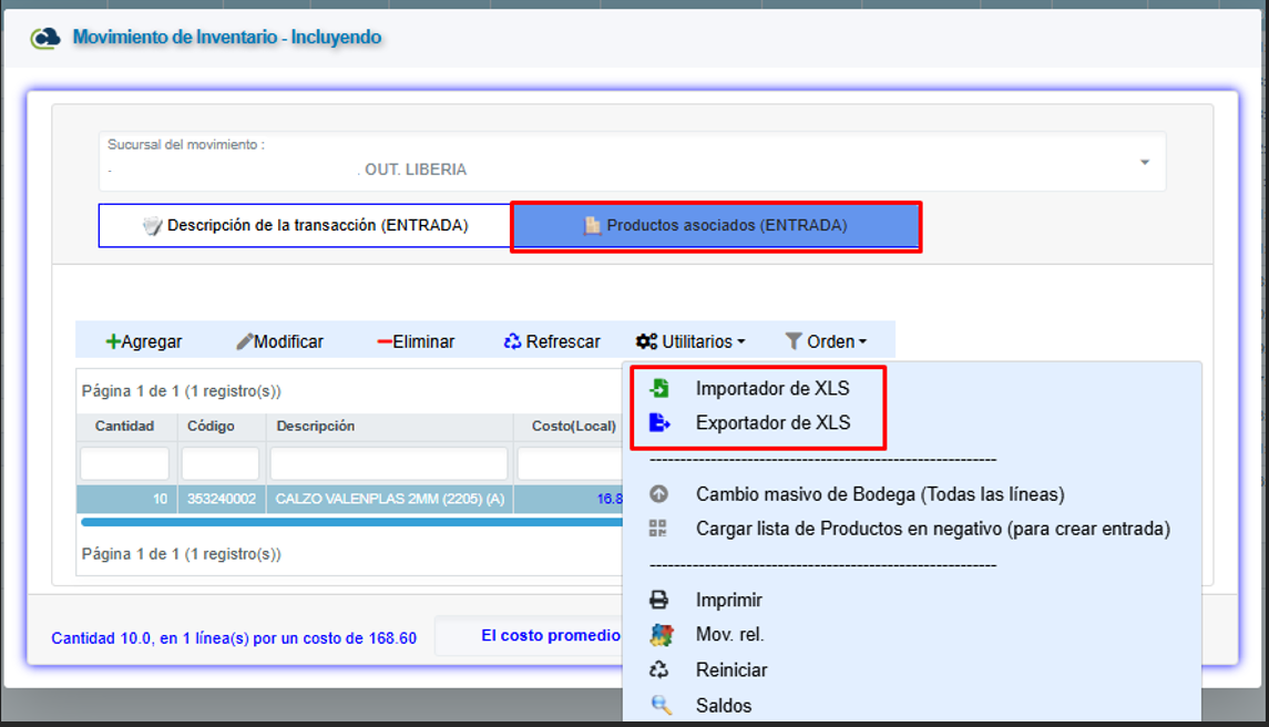 Tambi茅n tenemos la posibilidad de cargar los productos por medio de un importador, para esto debemos ingresar a "productos asociados" => submen煤 de "Utilitarios", y ah铆 tenemos disponible el importador ( debemos respetar las columnas que en el nos pide para evitar errores en la carga ) :聽